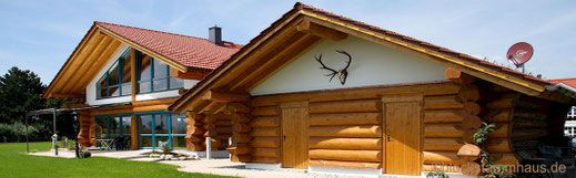 Mehrfamilien Blockstammhaus mit Garage: Dieses Großprojekt am Chiemsee in Bayern beweist dass der Blockbau auch für anspruchsvolle Mehrfamilienhäuser geeignet ist. Der Fokus lag auf Schallschutz und der Einhaltung strenger regionaler Kniestockhöhen Vorgaben. Ein klares Investment in massives Holz.